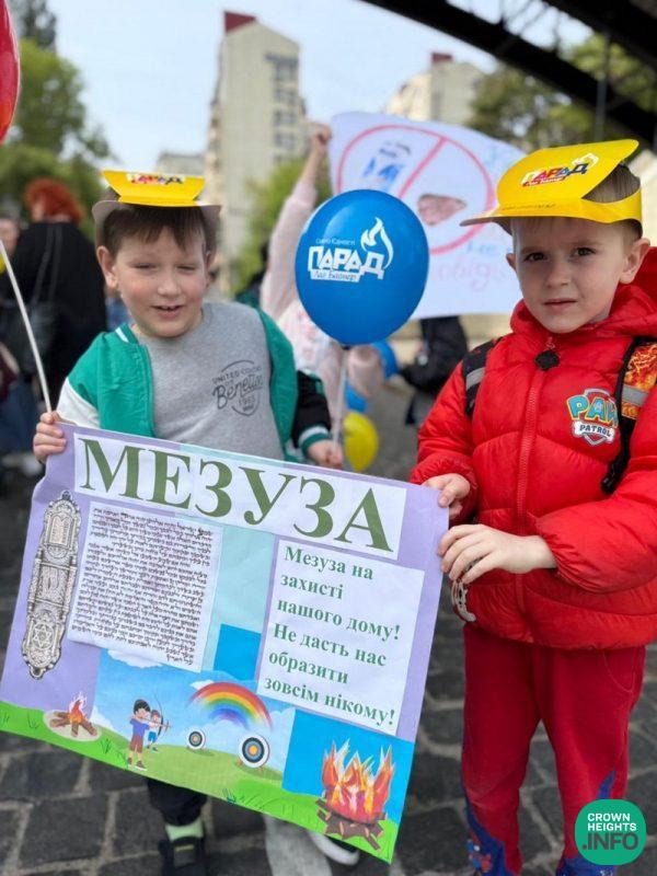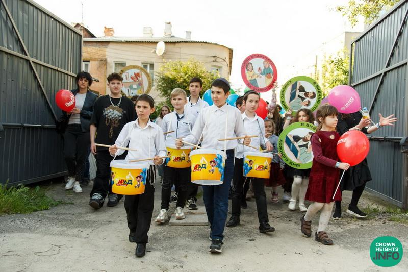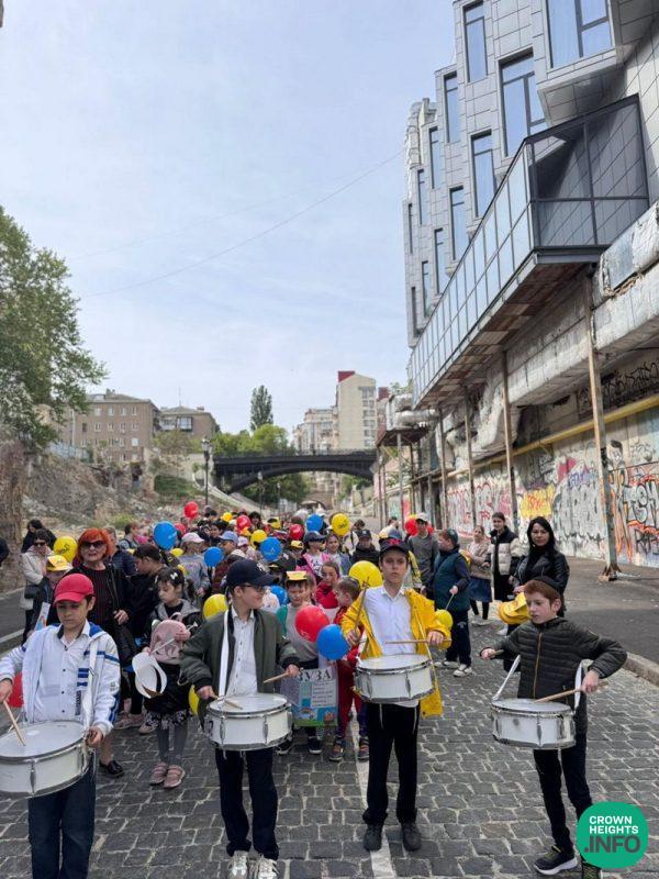 In Zhytomyr, a large parade was held for children and their parents from all over western Ukraine. “Entire families came,” said Rabbi Shlomo Wilhelm, Chabad emissary and Chief Rabbi of Zhytomyr and Western Ukraine. “Leading the parade were students from the FJC ‘Or Avner Chabad’ school, and the entire Jewish community came together.”