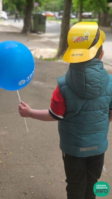 Preparations for Lag BaOmer began right after Passover. FJC and Chabad’s vibrant network across Ukraine, the JRNU, distributed large shipments of branded water bottles for the parades, snacks, balloons, and large signs, along with various educational materials.