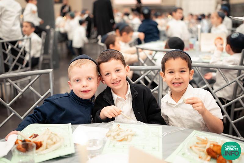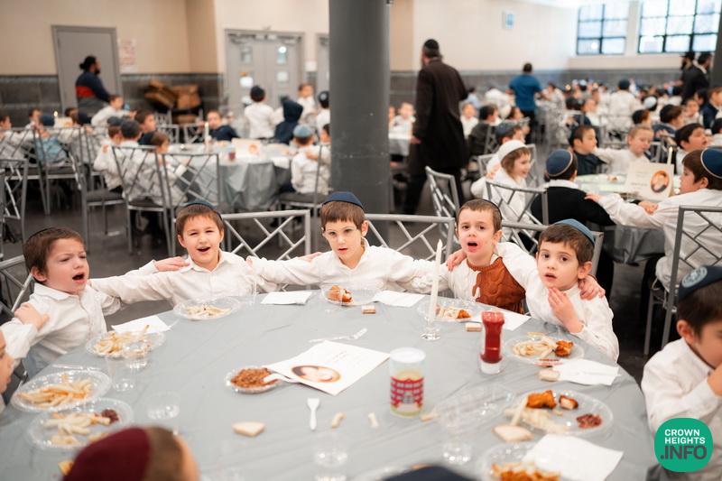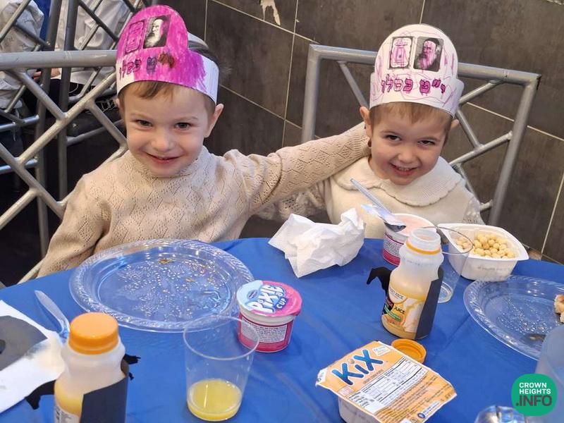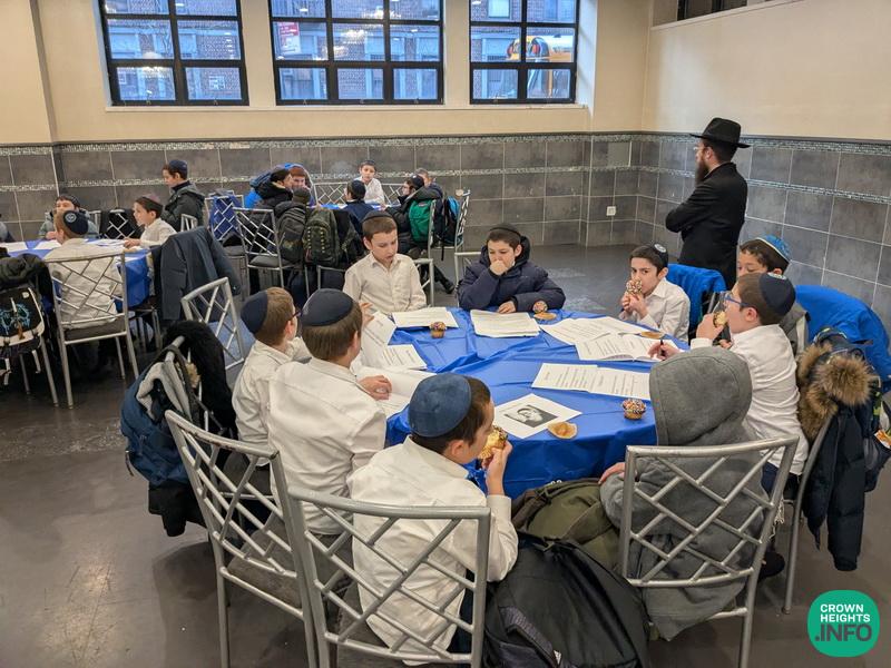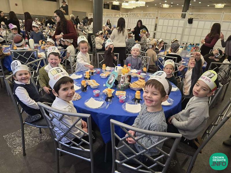 The Preschool had a special breakfast Farbrengen with tables decorated by handmade Tanya-themed centerpieces. The children sang Pesukim and niggunim, enjoyed an interactive storytime with life-size props, and each wrote a letter to the Rebbe. The program ended with a lively L’Chaim and dancing.
