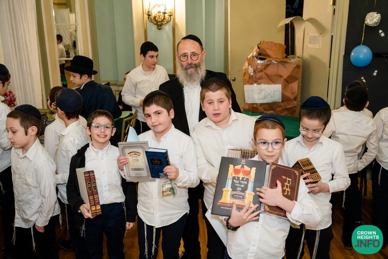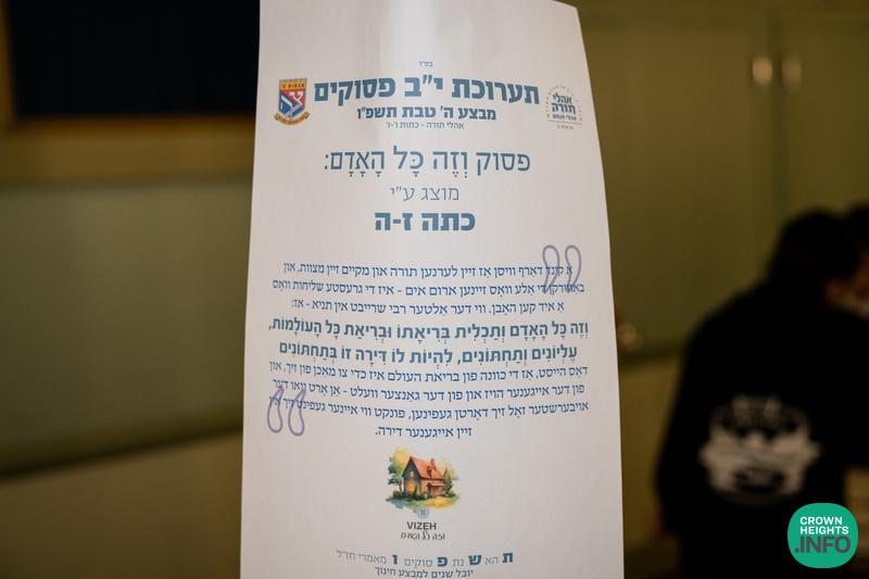 Adding to the excitement was a special auction tied to the Twelve Pesukim theme. Talmidim purchased raffle tickets for a range of beautiful prizes, with proceeds benefiting the Oholei Torah library. Students were encouraged to use their tzedakah for this purpose, continuing the Rebbe’s call for expanding and strengthening Torah libraries.