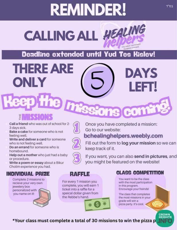 Healing Helpers: Bais Rivkah Girls grades 6,7,8 Team Up with Bikur Cholim of Crown Heights
