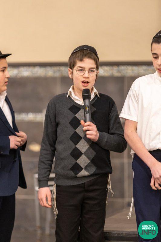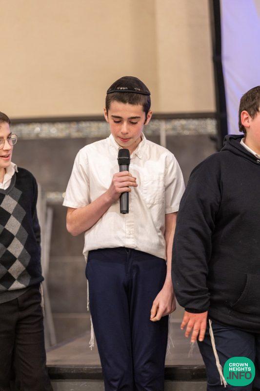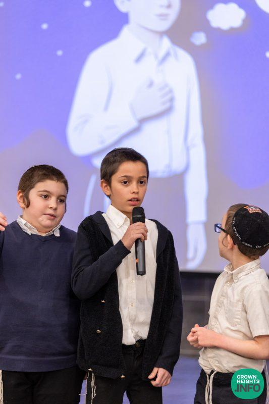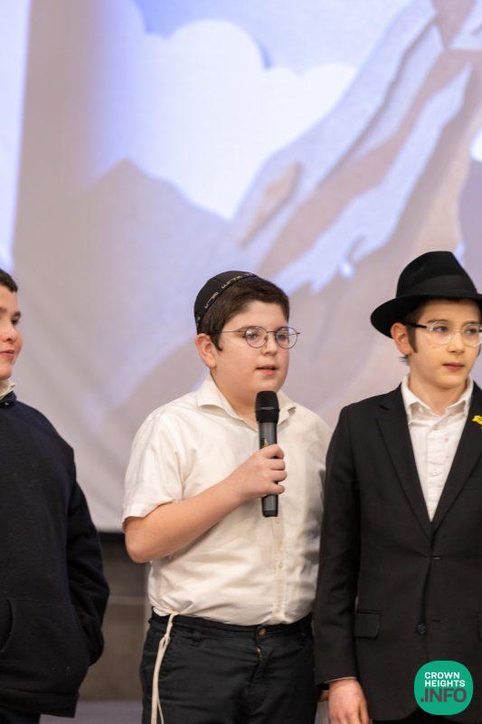 The assembly watched a captivating video of the Rebbe’s Siyum on Rambam, offering a unique perspective from a child’s point of view. Vice Principal Rabbi Yosef Yitzchok Overlander then called upon the newly promoted officers in Tzivos Hashem to lead the 12 pesukim and receive their new rank cards and plaques.