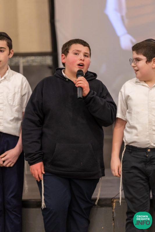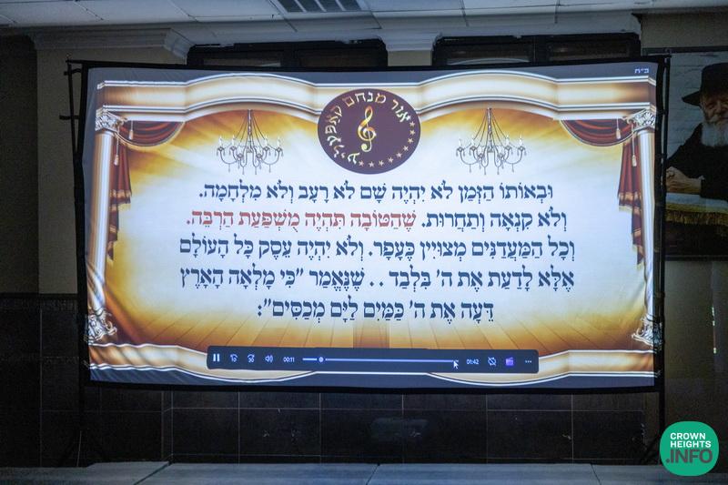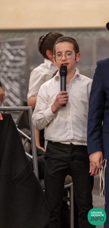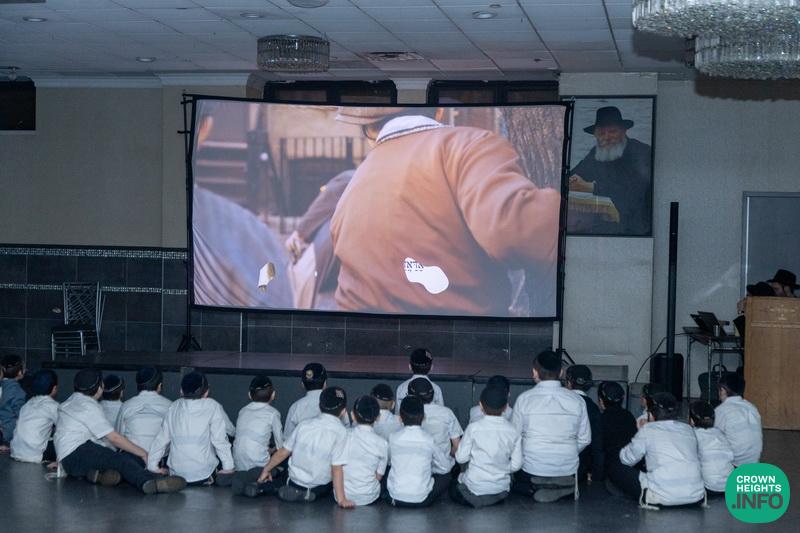 The assembly watched a captivating video of the Rebbe’s Siyum on Rambam, offering a unique perspective from a child’s point of view. Vice Principal Rabbi Yosef Yitzchok Overlander then called upon the newly promoted officers in Tzivos Hashem to lead the 12 pesukim and receive their new rank cards and plaques.