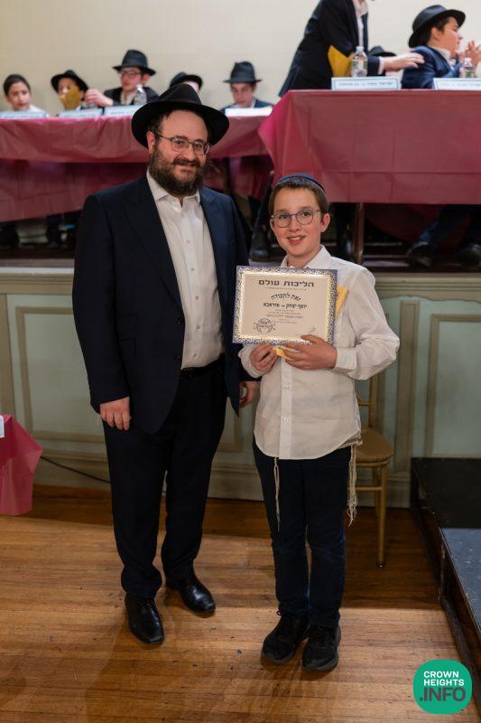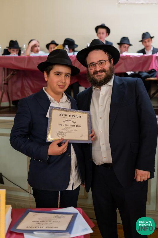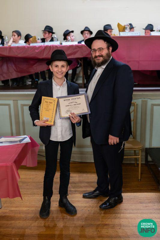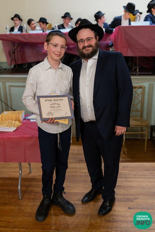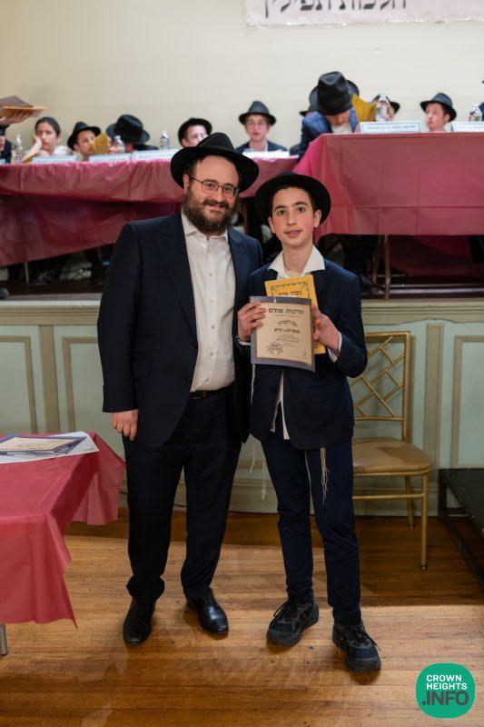 Chidon questions were posed by Rabbi Eli Simpson, principal of grades 6-7 in Oholei Torah, and Rabbi Menachem Mendel Scharf, principal of United Lubavitcher Yeshiva’s Mechina division. Judges included Rabbi Mendel Eidelman, Meisiv in Oholei Torah Zal, and Rabbi Levi Zirkind, 7th grade Rebbi in Oholei Torah. The program was coordinated by Rabbi Hershel Lustig, Rabbi Yosef Simpson, and Rabbi Leibel Newman of the Igud Menahalei Yeshivos, as well as Rabbi Yoni Lewkowicz, s’gan menahel of grades 6-7, and Mrs. Devi Baumgarten from the administration team at Oholei Torah.