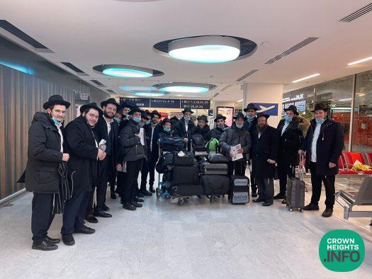 Yeshiva Ketana of Cergy, France boards a flight to New York to celebrate the 35th anniversary of Hei Teves in the Rebbe’s presence. The Yeshiva is one of a number of Yeshivos which are traveling to be by the Rebbe for this joyous day.