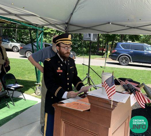 Rabbi Chesky Tenenbaum, Director of Jewish Uniformed Service Association of MD (JUSA), stood at the podium Monday to give the prayer at the Garrison Forest Veterans Cemetery Memorial Day Ceremony. Following the ceremony, Rabbi Tenenbaum, along with the Jewish War Veterans organization, hosted a Kaddish Memorial Day Service at the Jewish Section, one of the only such ceremonies in the country