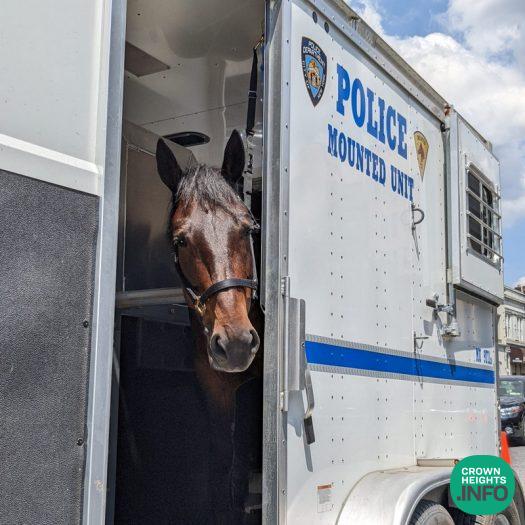 A four-legged friend peaked their head out to say hello while on a visit to Crown Heights Thursday. This NYPD horse was parked in the Shchuna but couldn’t resist the temptation of making a new friend in Crown Heights resident and influencer Rivky Perl.