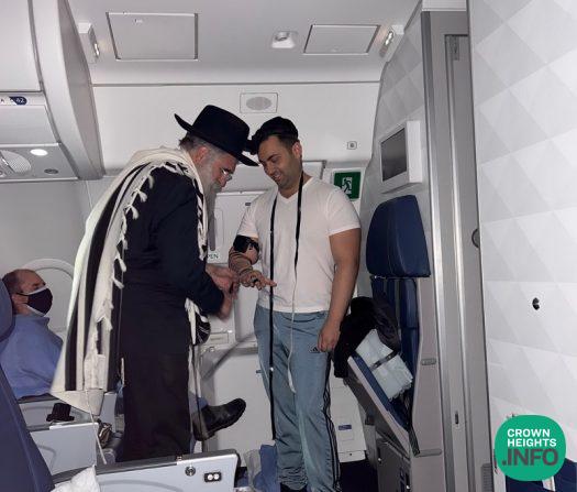Chabad Shliach Rabbi Yitzchok Minkowicz of Chabad Lubavitch of Southwest Florida was caught on camera doing Mivtza Tefillin with a well known Doctor from Long Island while on a Delta Flight to Israel.