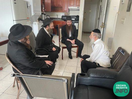 Rabbi Braun, Rabbi Kassimov, and Rabbi Raichik being menachem avel Hagoan Harav Hadayan Shmuel Felder of Bais Din of Lakewood, brother of Mrs. Bina Cunin of Crown Heights. Their mother, Rebbitzen Chaya Felder passed away at 102 last Tuesday. Senator Simcha Felder and Harav Chaim Moshe of Lakewood are sitting shiva as well.