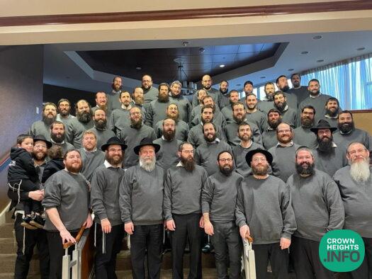 The men of Anshei Lubavitch Shul in Crown Heights pose for a picture at their family hakhel shabbaton that took place this week in the Poconos. The shabbaton was attended by 55 families, totaling 400 people, and was an amazing success.