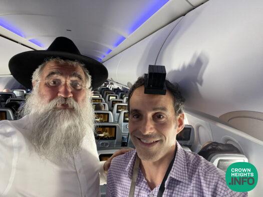 Shliach Rabbi Yitzchok Minkowicz of Chabad Lubavitch of Southwest Florida on the way to New York for Yud Shevat put on Teffilin on the flight with a young entrepreneur from Manhattan. Rabbi Minkowicz texted the young man’s mother the picture of them putting on Teffilin from the plane and she responded. “Thank you. So great!! I am very proud.”