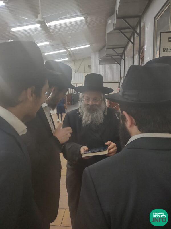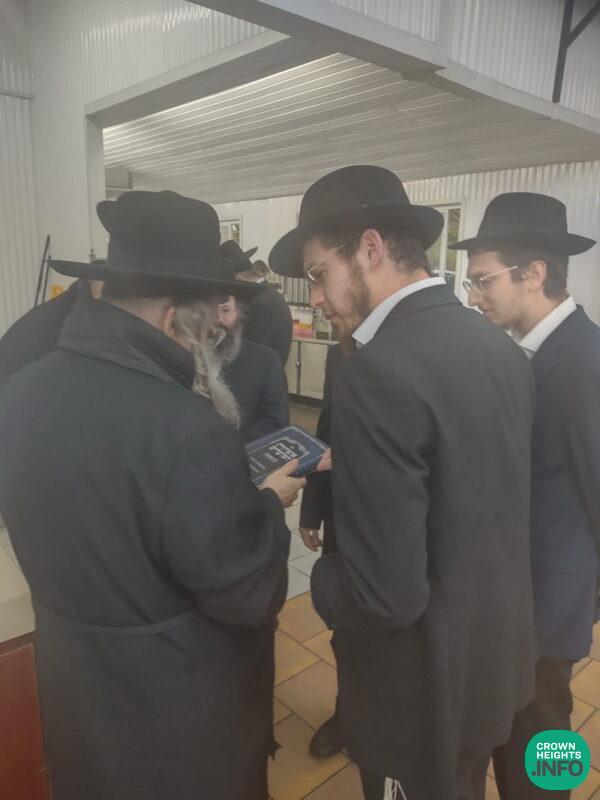 Rabbi Nechemia Alter, the son of the Gerer Rebbe, visited the Ohel on Wednesday. Upon leaving, a group of Bochurim learning at the Ohel gave him the Sefer “Otzros Hamoadim” – the Rebbe’s Torah about Shvuos, and spoke with him about Shnas Hakhel and Matan Torah based on the Rebbe’s Teachings.
