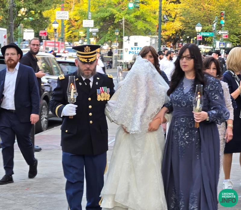 In a beautiful moment of personal Simcha and dedication to his Shlichus, a Texas based Shliach and Chaplain in the US Armed Forces was seen escorting his daughter to her Chuppah in front of 770 Eastern Parkway.