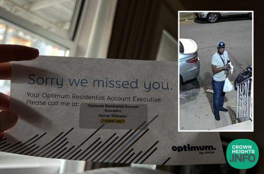 A sneaky man is reported to be going door to door in Crown Heights attempting to extract information from residents by claiming he is an employee of Optimum.