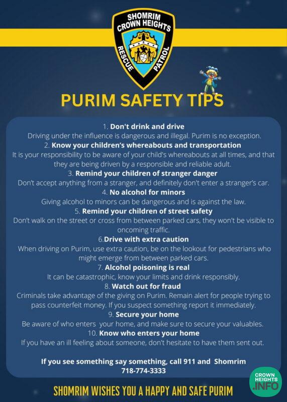 Crown Heights Shomrim Publishes Purim Safety Tips