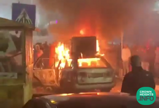 Footage of the incident shared online showed crowds of residents surrounding and looting the vehicle before setting it ablaze.