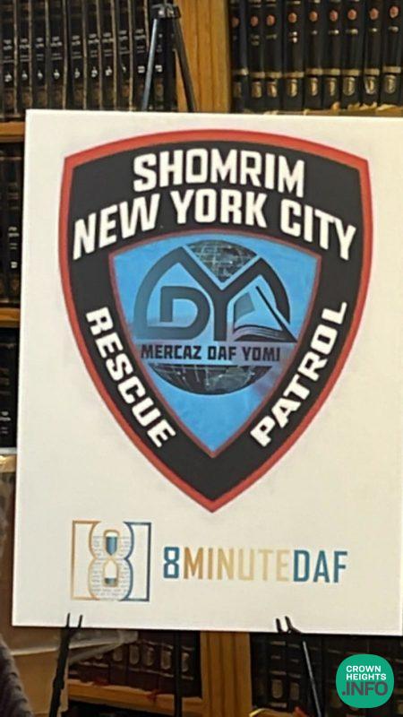 Shomrim volunteers from chapters across Brooklyn came together in Crown Heights Motzei Shabbos for an event marking a volunteer’s first siyum.