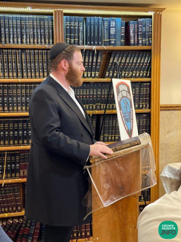 Crown Heights Shomrim volunteer Shmuel Gillig stood up to the podium at the Rayim Ahuvim Shul in Crown Heights and made a siyum on Meseches Taanis, his first siyum on a mesechta.