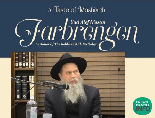 At the Yud Aleph Nissan preparation Seuda and Farbrengen following the weekly Taste of Moshiach Shiur, Rabbi Michoel Seligson will farbreng and share his memories of Nissan with the Rebbe at Beis Eliezer Yitzchok, 394 Kingston Ave, at 8:30.