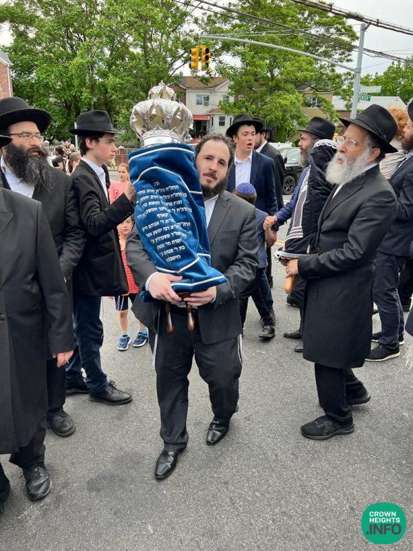 A long and lively procession wound it’s way from Crown Heights to Remsen Village Tuesday, welcoming a Sefer Torah written in memory of R’ Yaakov Aron Korf OBM.