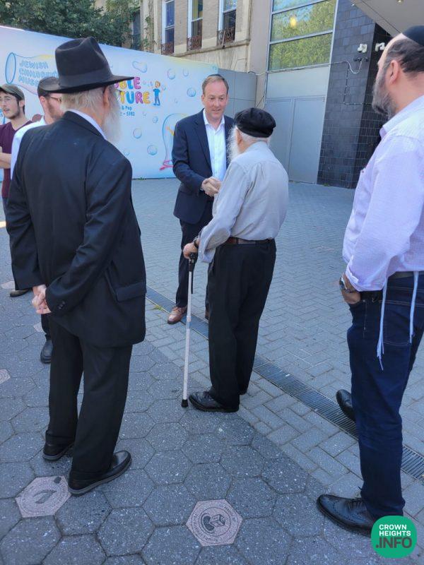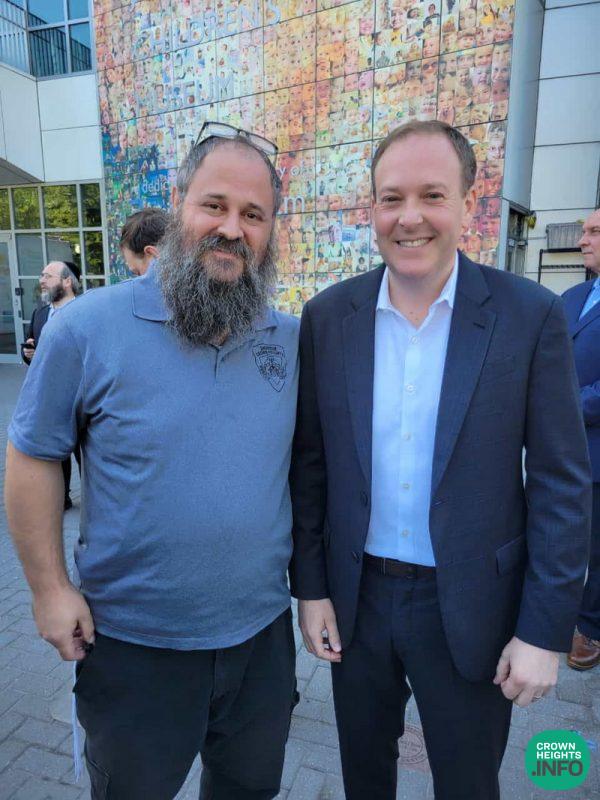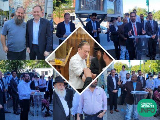 In a whirlwind visit to Crown Heights Friday morning, Jewish Congressman and Governor Candidate Lee Zeldin spoke about the surge in Anti-Semitic hate crimes and need of reform to the recent justice reforms, as well as put on Tefillin in 770.