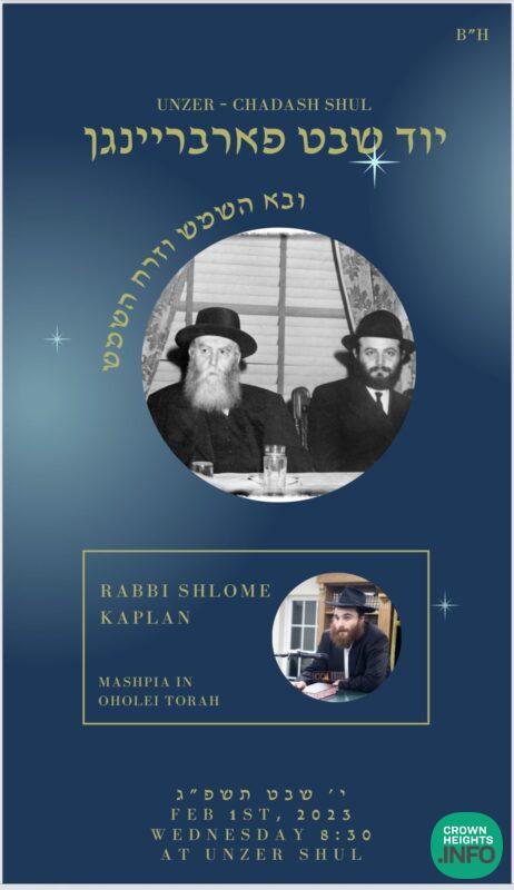 Wednesday Schedule: Yud Shvat Farbrengens Across Crown Heights