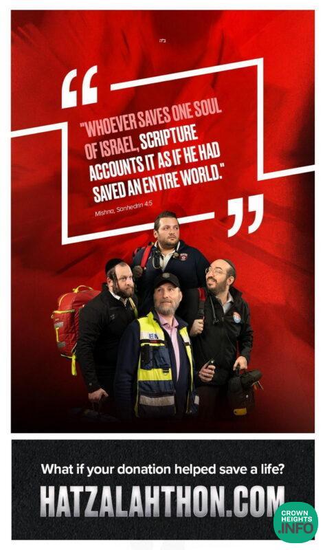 Your local branch of Hatzalah volunteers are your personal heroes and bodyguards, available and ready at a moment’s notice. Be sure to identify your local branch of Hatzalah when you donate to this cause- these are YOUR “Messengers of Life!”