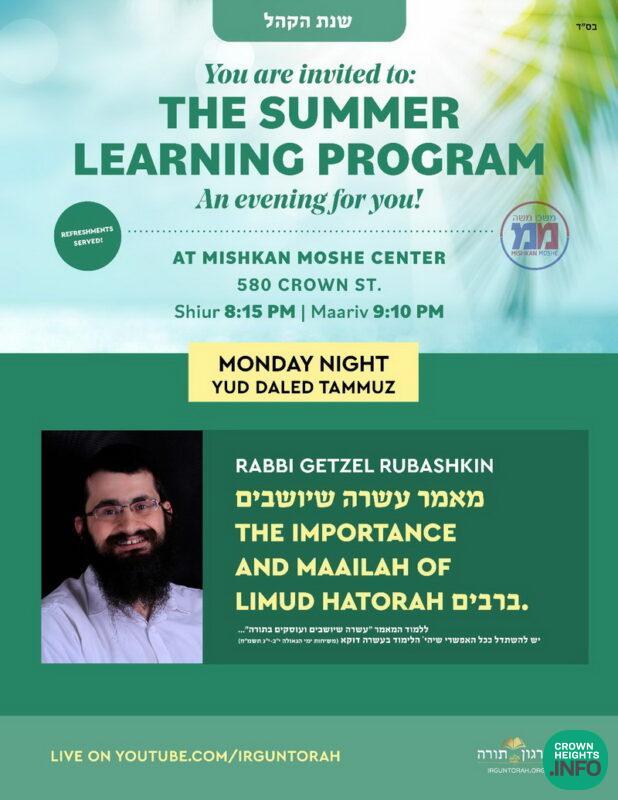 LIVE NOW: Summer Learning Program Returns – Nightly Shiurim Series For Anash