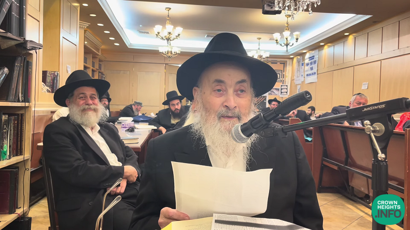 Following the minhag to make a siyum each day of the nine days, Rabbi Moshe Bogomilsky visited Empire Shtibel in Crown Heights Sunday night and officiated the Siyum.