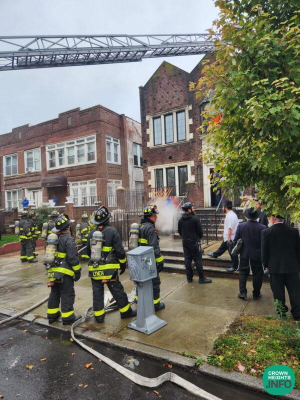 At present, the firefighters are allowing residents into the upstairs floors to retrieve their items, and the Sifrei Torahs were removed from the building.
