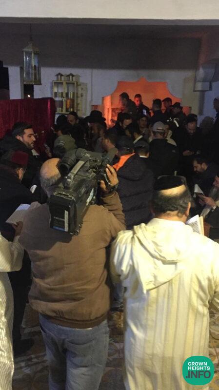 Mrs. Chaya Zaets and four of her children were actually in Toulal, Morocco, by the Kever of the Tzadik, and provided live stream from the Kever, allowing those present to daven to the Tzadik on line.