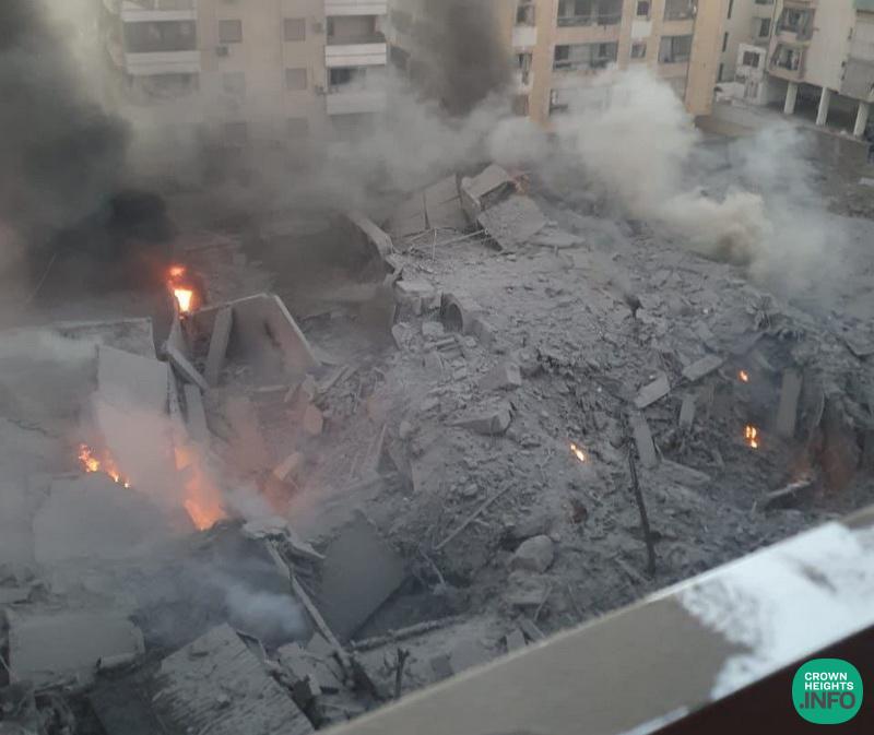 The attack took place around 10:45am Friday (Eastern Standard Time), with a reported ten enormous explosions sending plumes of smoke from six residential buildings flattened by bunker-busting bombs. Images and video from the scene show complete devastation.