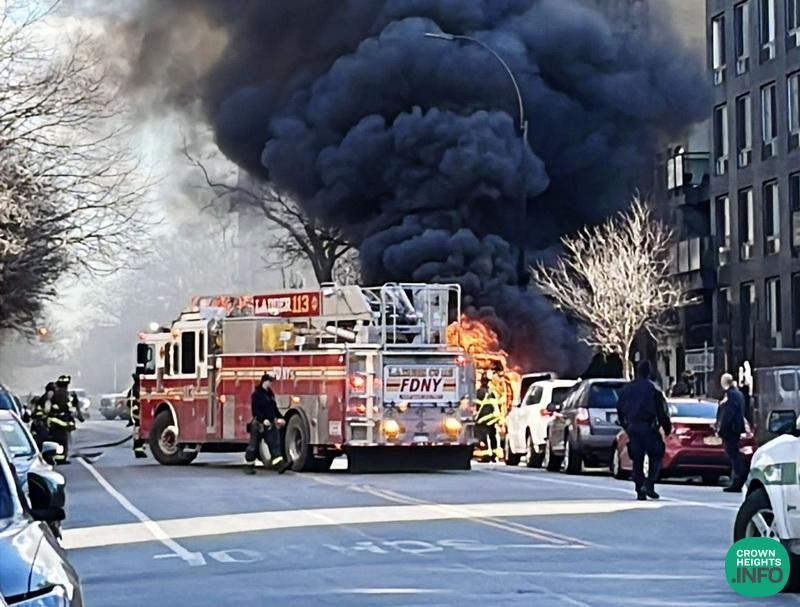 A fast-moving fire engulfed a van in Crown Heights Wednesday morning near the intersection of Lefferts Ave and Lamont Ct. Firefighters quickly put out the fire with heavy smoke choking the area.