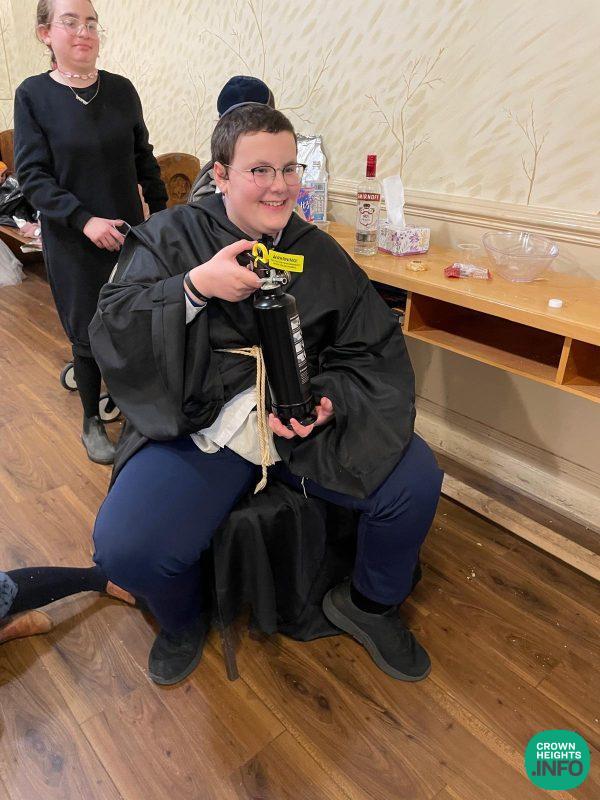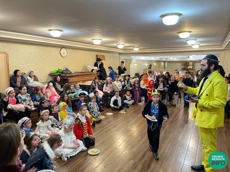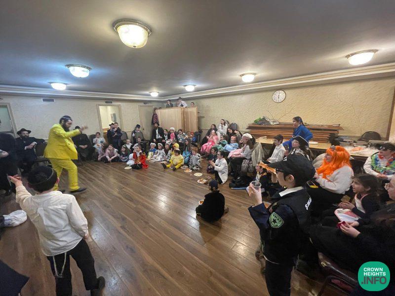 After Megilla, the celebration started with pizza and refreshments for all, followed by the recitation of the 12 pesukim and the show.