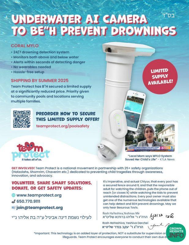 As Rabbi Yaakov Bender, Rosh HaYeshiva of Yeshiva Darchei Torah, emphasizes: “It’s imperative, and actual Chiyuv, that every pool has a secured fence around it, and that the responsible adult for watching the children, puts the phone out of reach (or closes it) while watching the kids to prevent unintended distractions. Every pool owner must also get one of the numerous technologies available that can help detect and בע״ה prevent drownings. May we only hear “בשורות טובות