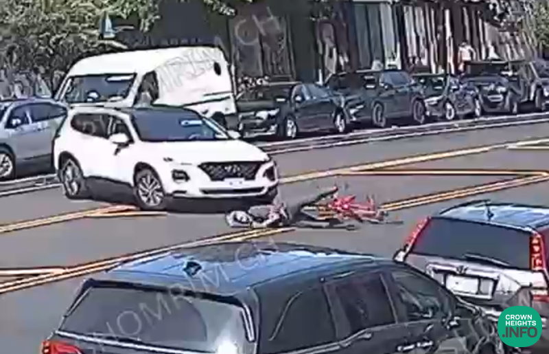 A cyclist riding on Empire Blvd in Crown Heights got nailed by a vehicle making a U-turn and crossing over the street. Stay safe while riding your bike.