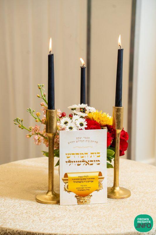 In addition to the primary contribution by the Michelashvili family, several generous donors have come forward to further enhance the Beis Medrash’s beauty and sanctity. Among them: the Shaar was dedicated l’iluy nishmas R’ Zalman Yuda a”h Deitsch; the Bimah, Shtender, and Seforim bookshelves were dedicated l’iluy nishmas Mrs. Tzivia a”h Gopin; and the projector and screen, used for Rebbe video viewings, were dedicated l’iluy nishmas R’ Peretz and Mrs. Batsheva a”h Feigenson.