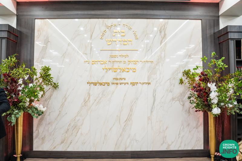 In addition to the primary contribution by the Michelashvili family, several generous donors have come forward to further enhance the Beis Medrash’s beauty and sanctity. Among them: the Shaar was dedicated l’iluy nishmas R’ Zalman Yuda a”h Deitsch; the Bimah, Shtender, and Seforim bookshelves were dedicated l’iluy nishmas Mrs. Tzivia a”h Gopin; and the projector and screen, used for Rebbe video viewings, were dedicated l’iluy nishmas R’ Peretz and Mrs. Batsheva a”h Feigenson.