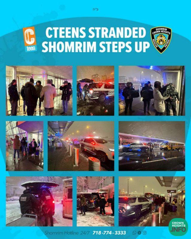 Shomrim responded swiftly to an urgent call from CTeen leadership to assist approximately 150 CTeens stranded at JFK Airport. Three vehicles and seven dedicated volunteers delivered food and water and provided critical logistics and transportation support, including assistance for an additional group of teens staying at a nearby hotel. In addition, Shomrim arranged and coordinated two buses to transport groups of teens back to Crown Heights.