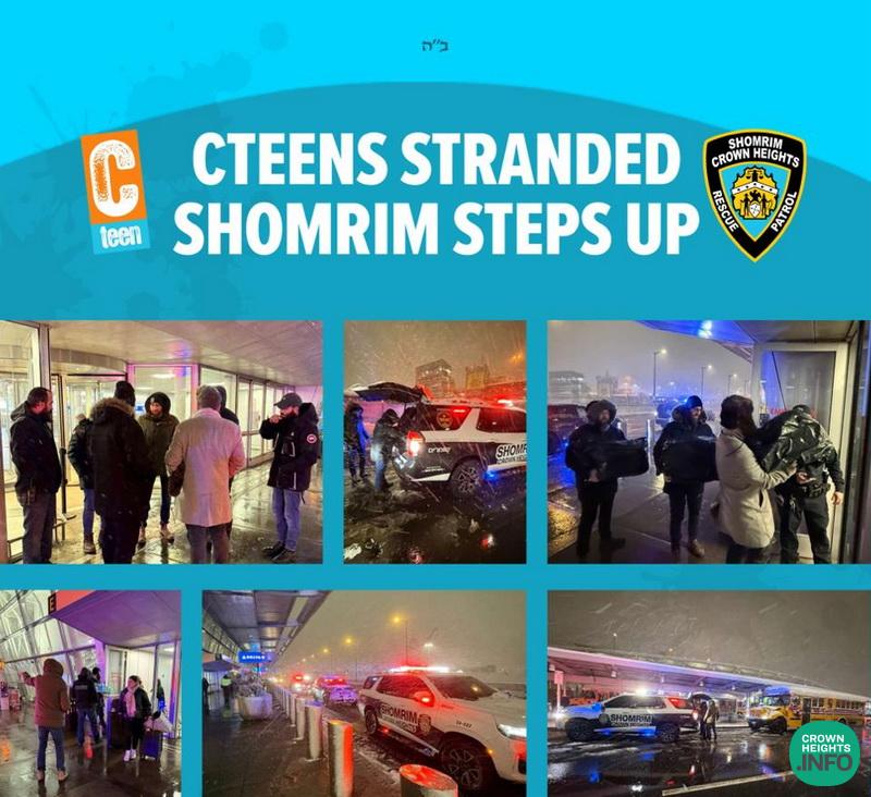 Shomrim responded swiftly to an urgent call from CTeen leadership to assist approximately 150 CTeens stranded at JFK Airport. Three vehicles and seven dedicated volunteers delivered food and water and provided critical logistics and transportation support, including assistance for an additional group of teens staying at a nearby hotel. In addition, Shomrim arranged and coordinated two buses to transport groups of teens back to Crown Heights.